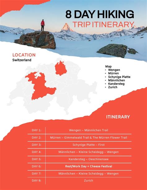 In conclusion, a hiking itinerary example is a valuable tool for planning your next hiking adventure. It helps you overcome common pain points, provides a detailed plan, and ensures that you make the most of your time on the trail. By following a well-crafted hiking itinerary, you can explore new destinations, challenge yourself physically, and create lasting memories. So start planning your next hiking adventure today and get ready to hit the trails!